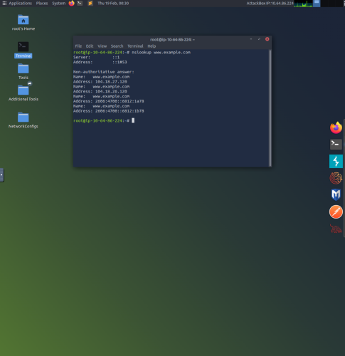 1.  Running the Linux terminal with the command “nslookup example.com” provides insightful information such as the A record IPv4 addresses and the AAAA record IPv6 addresses.