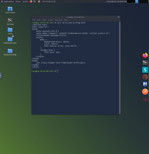 3. In this example the curl command is used in order to print the raw HTML contents of flag.html from the server at 10.64.166.21.