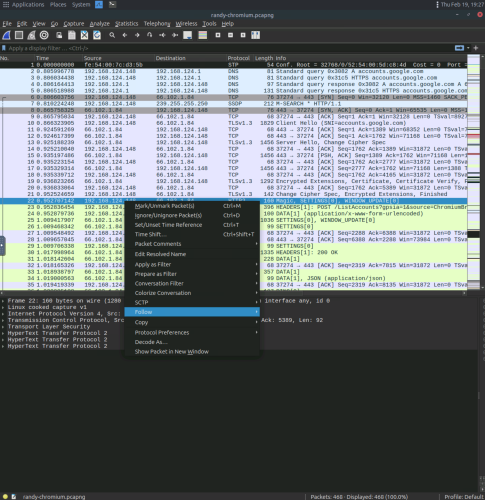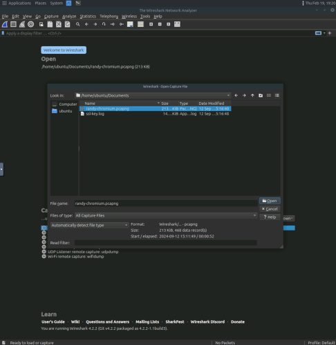 2. Use Wireshark to open the “randy-chromium.pcapng” to view the network capture file.