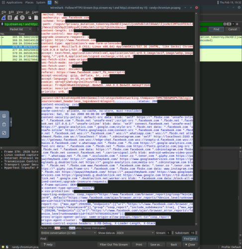 6. Following an HTTP2 stream shows the stream of packets and their contents, the red is sent by the client, and the blue is sent by the server.