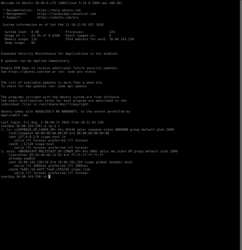 1. Using the Ubuntu terminal, the command “ip a s” is used to gather relevant network information such as interface names, IP addresses, and the state of network interfaces.