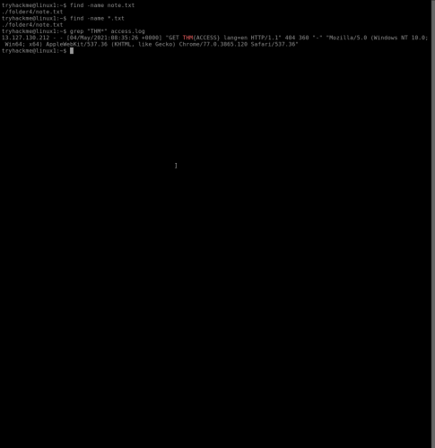 4. The find command is useful for finding specific files. This example uses the command find -name note.txt to locate the note.txt file in folder4. The grep command is a more advanced search that can search servers and IP addresses for specific files.