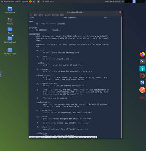 7. This example uses the man ls command to see the manual for ls, which documents many useful commands that can be used with the ls command.